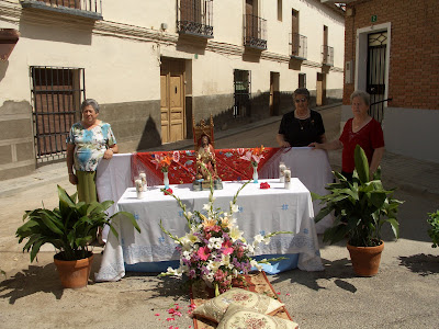 Mientras pasaba se decían las mujeres "Que lo podamos hacer y ver al año que viene" Son los deseos de la gente sencilla, trabajar y poder ver el fruto del esfuerzo, trabajar de sol a sol, vivir la vida honrando la jornada y sacrificándose por los suyos, para poder ver como crecen. La vida está llena de misterios y la fe puede ayudar a vivir. Vaya este homenaje a Aquellas personas que cada día adornan este pueblo con su bondad y hacen crecer en sus calles asfaltadas nuevas flores cargadas de solidaridad.10 de junio Corpus Christi