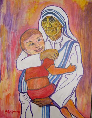 La que ha ido a misa todos los días de su vida ha sido esta mujer santa en vida y santa en muerte. Decía que la fuerza para estar con los pobres se la daba la Eucaristía que celebraba por la mañana temprano para estar unida todo el santo día a Jesucristo. Me río con los comentarios de los periodistas que bajo una gran ignorancia ven los escritos publicados de la Madre como una pérdida de fe. Todos tenemos nuestras crisis, dudas y depresiones. También los santos. Los españoles deberíamos saber por los bellos escritos de los santos de Avila, Teresa y Juan, que la noche oscura también se apodera de las almas más inocentes que buscan a Dios. San Francisco, al final de sus días, pasó una gran crisis, una profunda noche oscura, y gritaba en el interior de su oración que Dios le hablara. No me extraña que esta pequeña mujer que a arrebatado en fama y en éxito a los mejores ídolos del mundo, ganándose los corazones de todos los hombres, de todas las mujeres, de todos los niños, no tuviera sus miedos al ver la obra que estaba realizando. Dejar a las Hermanas de Loreto para seguir buscando la voluntad de Dios entre los más pobres no es prestigio de santos sino de verdaderos seguidores del Evangelio. Mis alumnos, cuando la ven en los libros de Religión, comentan que es una mujer muy guapa, muy buena, muy santa. La fe y las obras nos salvan. Y esta mujer tiene mucha fe y tiene muchas obras. Es una suerte haberla conocido en vida. Es una suerte leerla tras su muerte. Ya lo dice Jesús como buena noticia: si el grano de trigo no muere no da fruto. Hay tanto que aprender de esta mujer que el silencio es el mejor encuentro con ella. Santa Madre Teresa de Calcuta, ruega por nosotros.