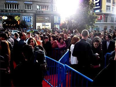 Aunque lo había escuchado en la radio por la mañana templano no me podía creer que esa concentración de personas fuera solo para ver de cerca, para intentar tocar, besar o fotografiar a unos actores de una serie de televisión. La Gran Vía madrileña estaba abarrotada por un gentío que llevaba tiempo esperando ver a los protagonistas de la serie Sin tetas no hay paraíso. Pensé, puesto que procedía de la calle San Bernardo, que era otro brote manifestándose ante el Ministerio de Justicia. Pero no, estos no tenían pancartas y no gritaban nada todavía, pues la hora de llegada aún tendría un gran tramo de espera. La alfombra roja, paneles publicitarios, espacio para las fotos de pose de los invitados Vip´s; no faltaba de nada, incluso el público estaba entusiasta por acercarse a estos nuevos guaperas del mundo televisivo.
