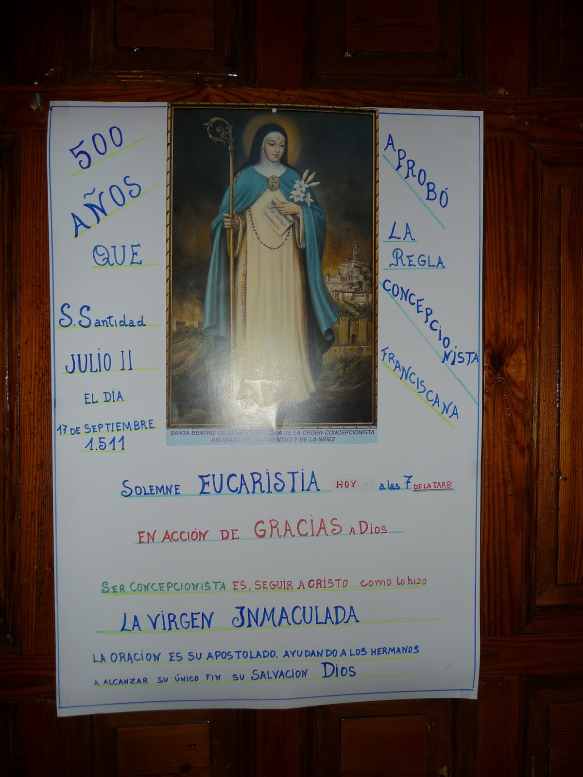 celebrarse o a prepararse. El próximo 18 de septiembre de 2011 se celebrará dicho centenario: quinientos años de gloria, quinientos años de gracia, quinientos años bajo un carisma evangélico, quinientos años siguiendo al Esposo tras la forma de vida que